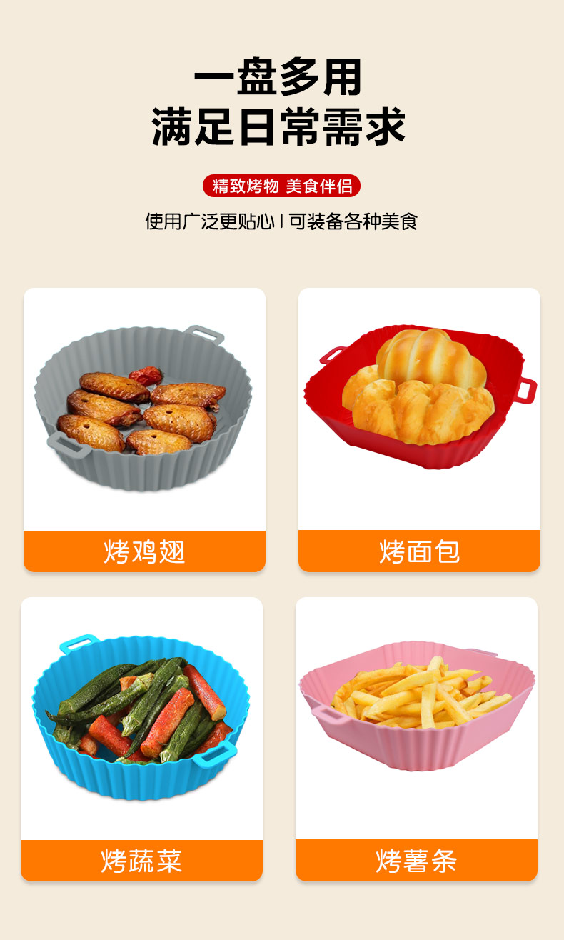 您的位置:首頁 > 產品中心 > 硅膠廚具用品 > 空氣炸鍋硅膠烤盤易清洗不粘油硅膠炸鍋墊可重復使用空氣炸鍋墊