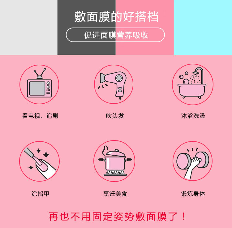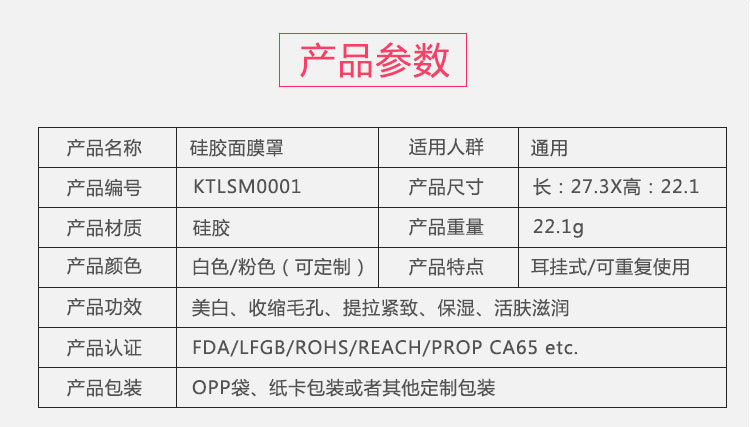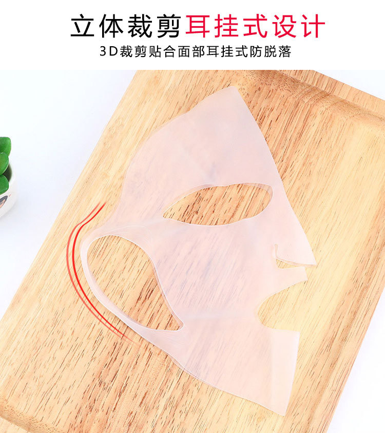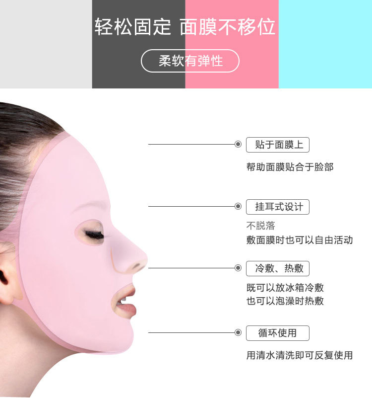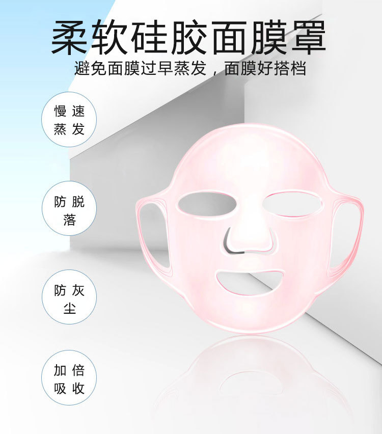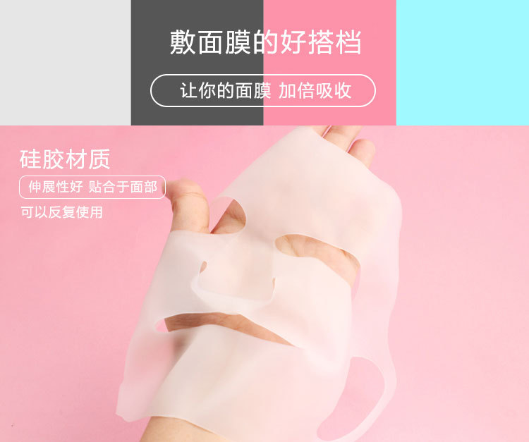特點(diǎn):環(huán)保硅膠材質(zhì),反復(fù)清洗使用,伸展性良好,貼合臉部有效防止面膜精華和水分過早蒸發(fā),影響吸收;面膜罩耳掛設(shè)計(jì),有效防止面膜移位或脫落,適合各種臉型。