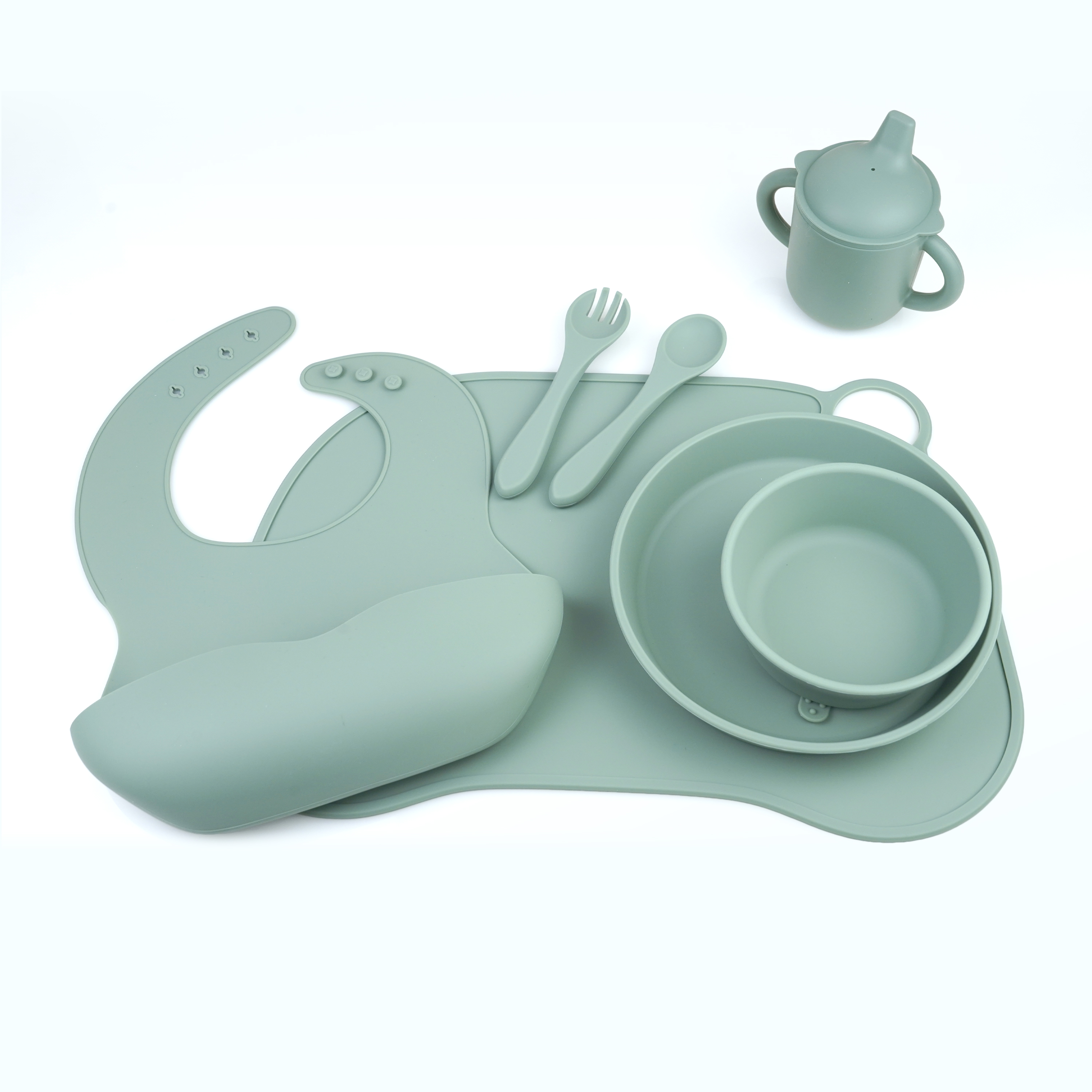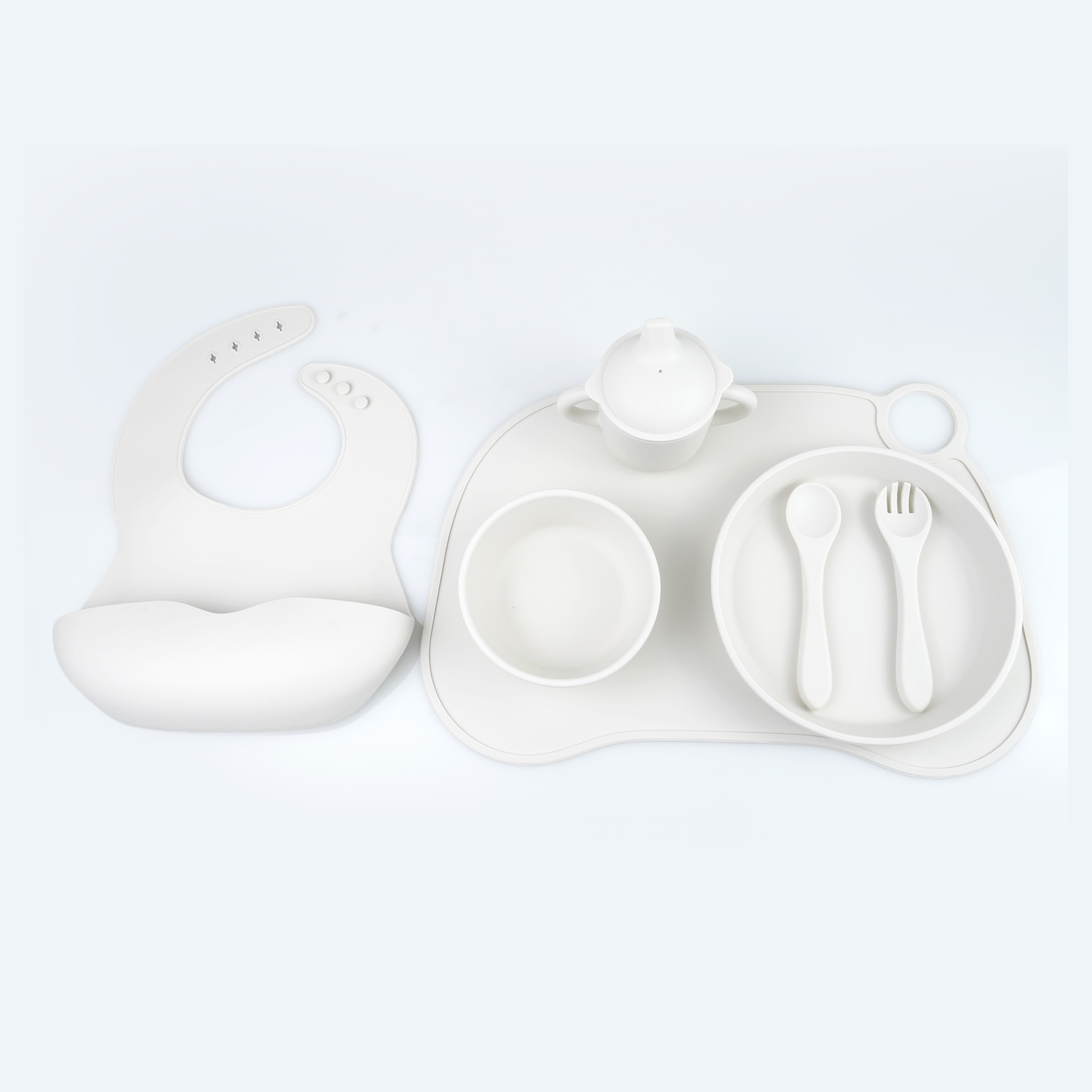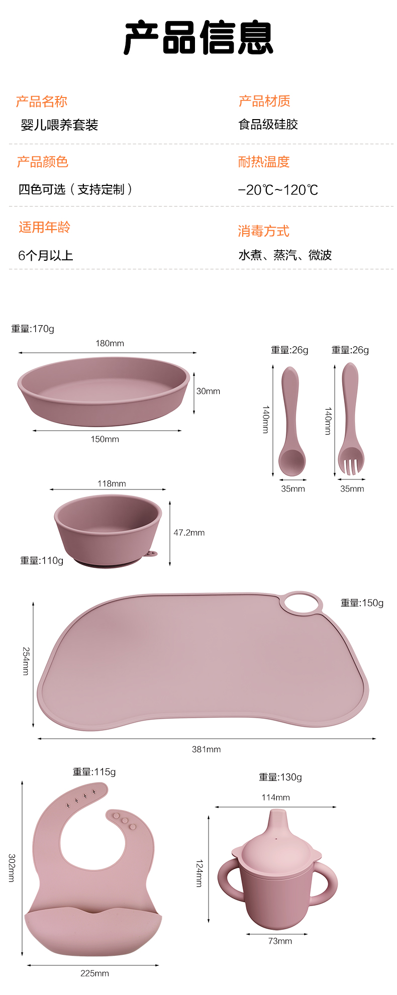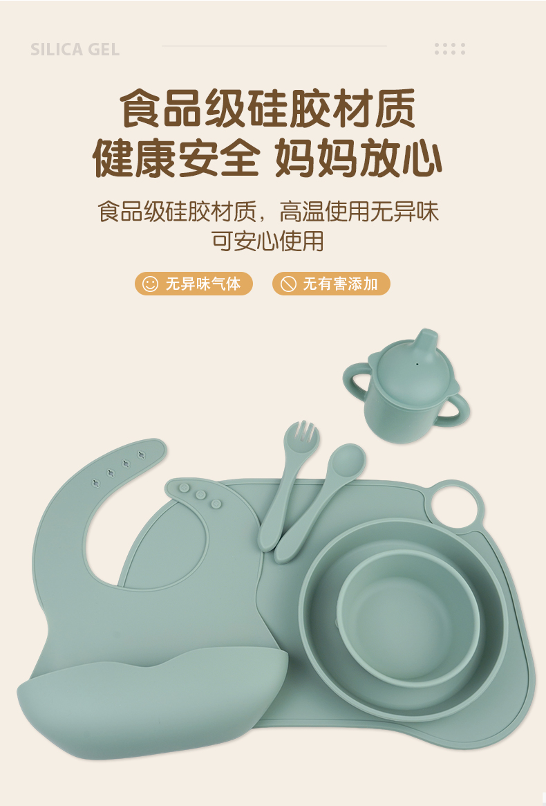 口水兜+碗+叉勺+餐盤(pán)+學(xué)飲杯+餐墊